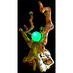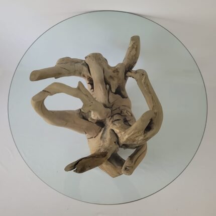 An oval wooden masterpiece made of tree roots, painted with varnish, length 24 cm, height 20 cm.