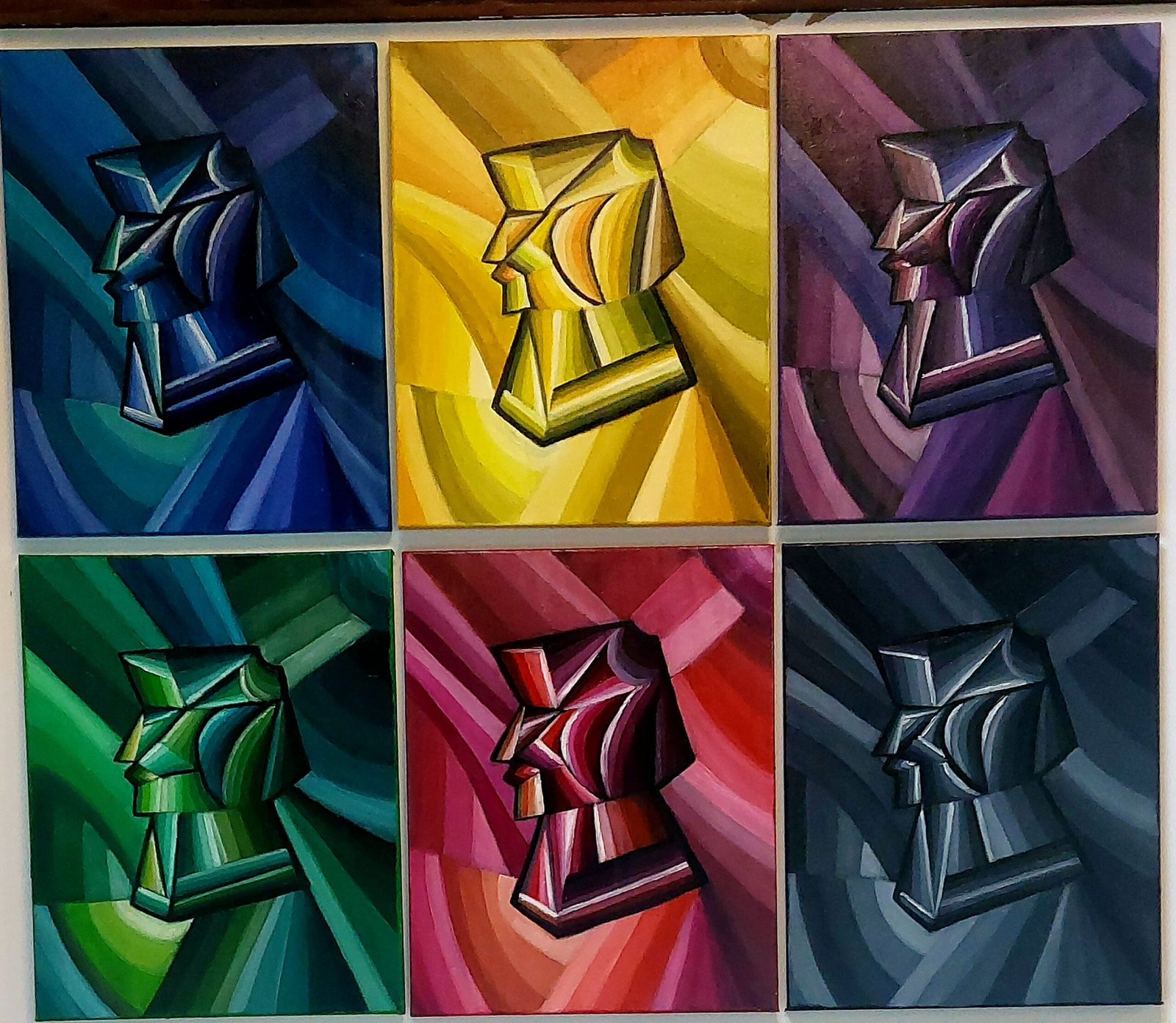 Cubist abstract style, color gradient technique, oil colors painted with color stabilizer and varnish, the painting consists of 6 panels, each one 40/50 cm in size,