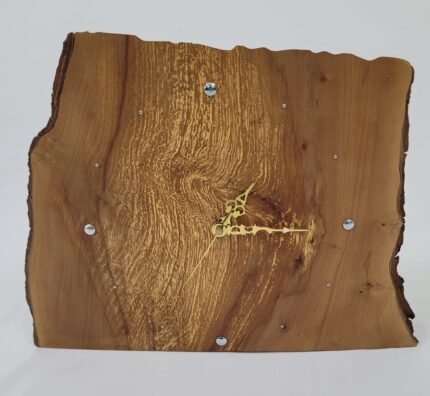 Clock made of wood from tree roots, size: height 31 cm, width 38 cm, thickness 5 cm, natural in appearance, not painted, runs on battery